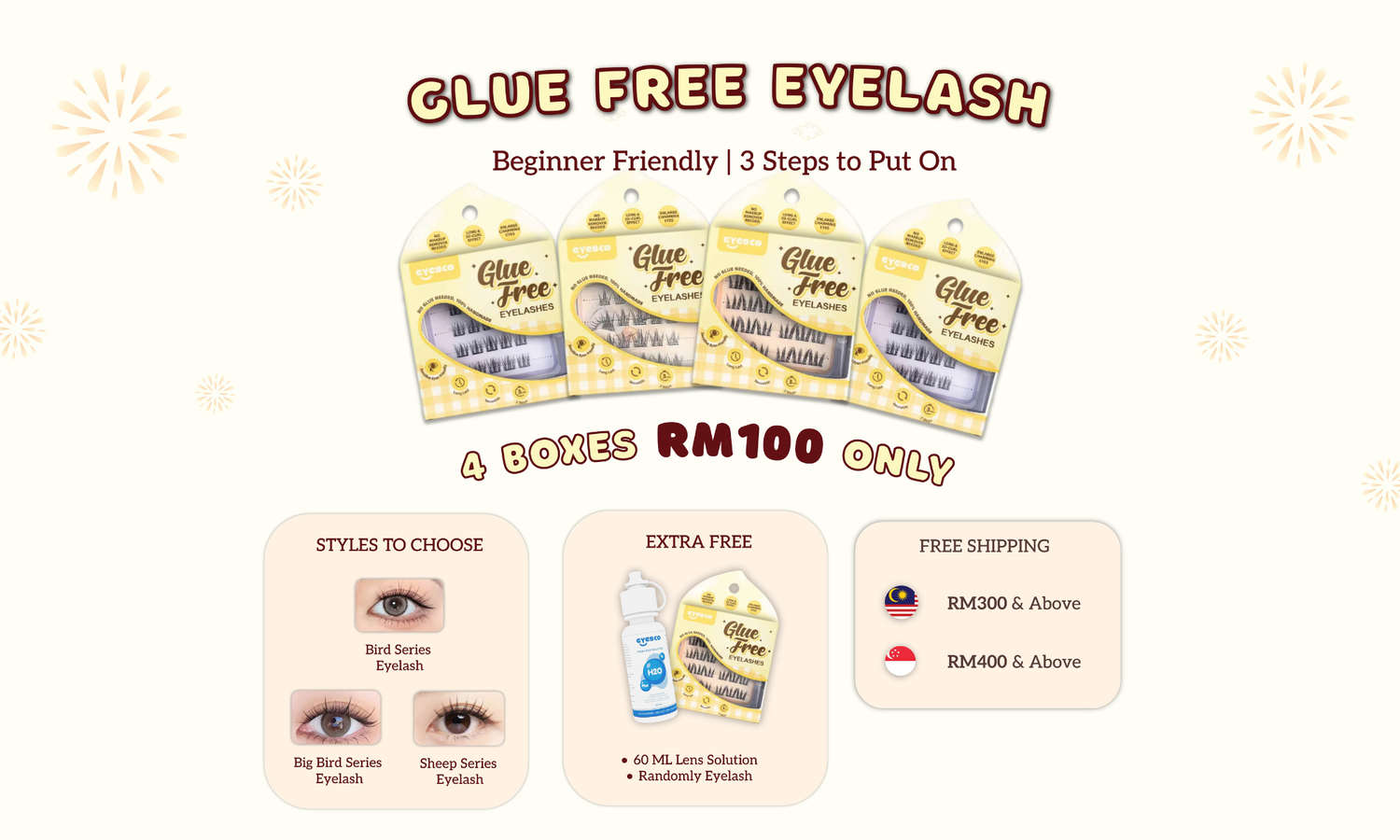 GLUE FREE EYELASHES - READY STOCK